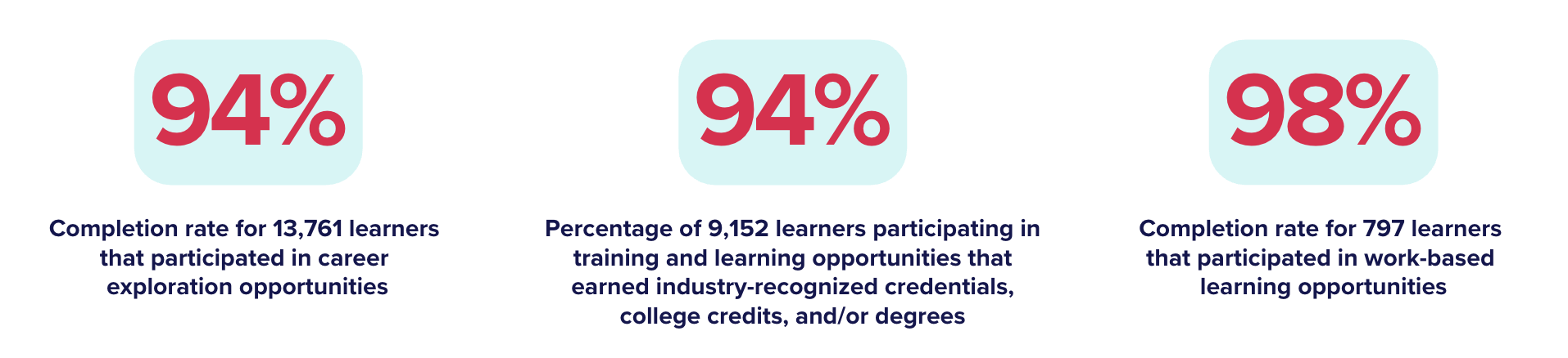 Beyond credentials, learners also reported increased confidence, a stronger sense of purpose, and skills to navigate an ever-evolving labor market—outcomes that extend well beyond a single program experience.